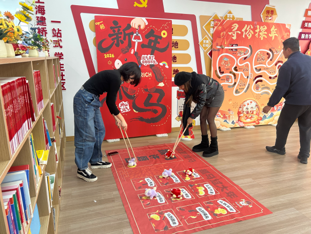 为丰富留校学生春节文化生活,让同学们感受传统年俗魅力、共度温馨丙午马年,2月11日下午,“一站式”学生社区新春游园会在北78公共空间二楼热闹举办。本次活动以“瑞马迎新春,巧艺启新程”为主题,打造非遗体验、游戏互动、年味手作三大特色区域,用趣味闯关、巧手创作的形式,为留校学子奉上兼具文化底蕴与欢乐氛围的新春雅宴,让校园成为暖心新年港湾。